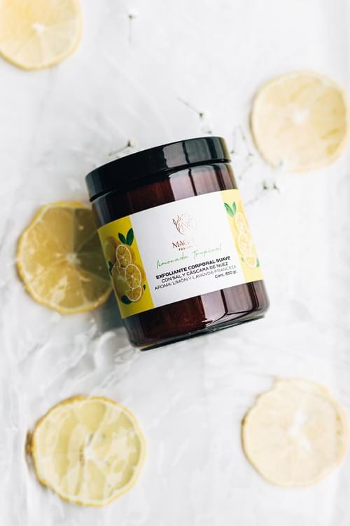Aplicar con la piel mojada y tallar en círculos al gusto. Enjuagar con agua tibia.